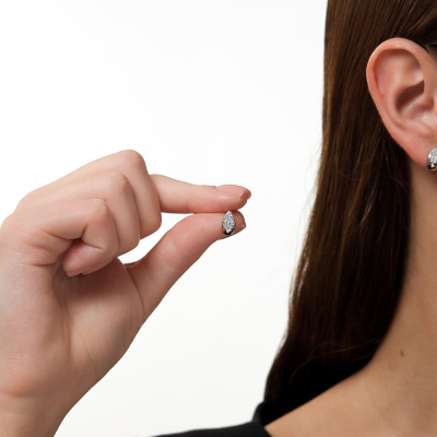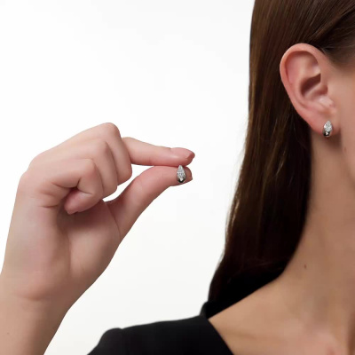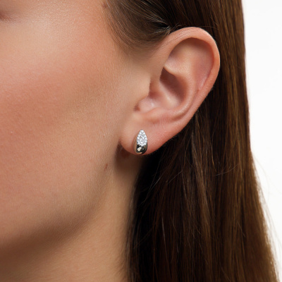 Серьги с 36 бриллиантами природными, 0.1 карат, огранка круг 17 граней, цвет 3, чистота 3, тип огранки Б; Серебро 925 пробы.