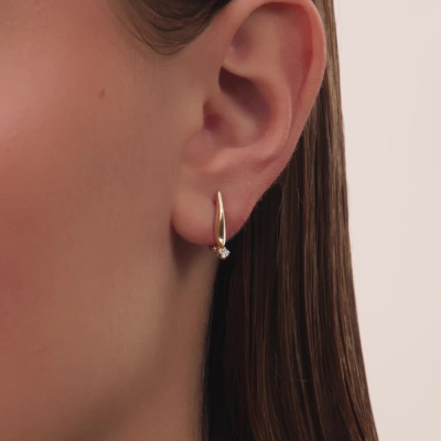Серьги с 2 бриллиантами природными, 0.05 карат, огранка круг 57 граней, цвет 4, чистота 6, тип огранки А; Желтое золото 585 пробы.