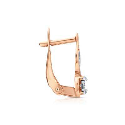 Серьги с 2 бриллиантами природными, 0.06 карат, огранка круг 57 граней, цвет 3, чистота 6; 4 бриллиантами природными, 0.01 карат, огранка круг 17 граней, цвет 2, чистота 2; Розовое и белое золото 375 пробы.