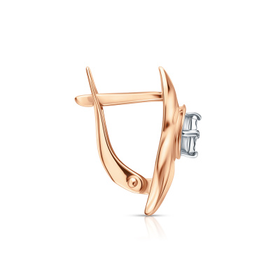 Серьги с 2 бриллиантами природными, 0.06 карат, огранка круг 57 граней, цвет 3, чистота 6; Розовое и белое золото 375 пробы.