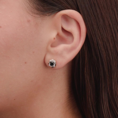Золотые серьги с бриллиантами природными и сапфирами природными