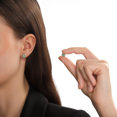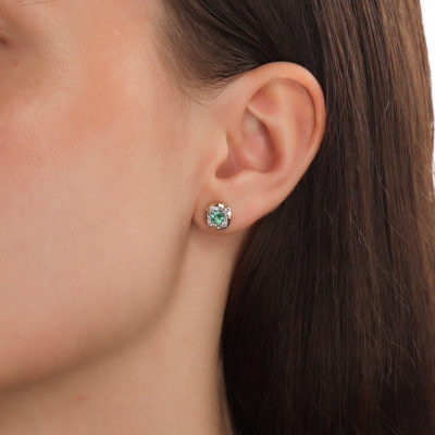 Серьги с 32 бриллиантами природными, 0.1 карат, огранка круг 17 граней, цвет 2, чистота 2, тип огранки А; 2 изумрудами природными, 0.47 карат, цвет 3, чистота Г3; Желтое золото 585 пробы.