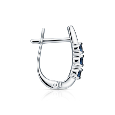 Серьги с 12 бриллиантами природными, 0.05 карат, огранка круг 17 граней, цвет 2, чистота 2, тип огранки А; 6 сапфирами природными, 0.76 карат, цвет 2, чистота 2; Белое золото 585 пробы.