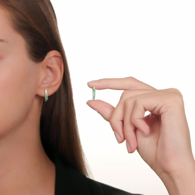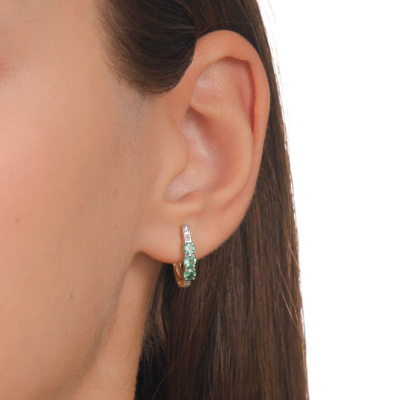 Серьги с 12 бриллиантами природными, 0.05 карат, огранка круг 17 граней, цвет 2, чистота 2, тип огранки А; 6 изумрудами природными, 0.53 карат, цвет 3, чистота 3; Желтое золото 585 пробы.
