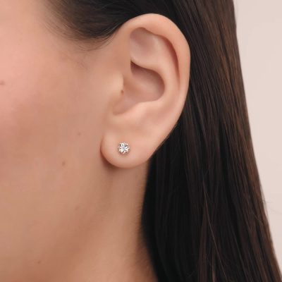 Серьги с 2 бриллиантами природными, 0.01 карат, огранка круг 17 граней, цвет 2, чистота 2, тип огранки А; Розовое золото 375 пробы.