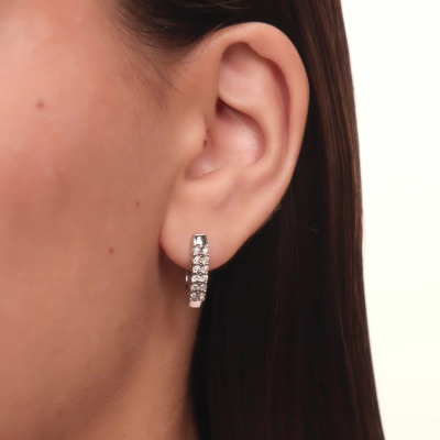 Серьги с 24 бриллиантами природными, 0.12 карат, огранка круг 17 граней, цвет 2, чистота 2, тип огранки А; Белое золото 585 пробы.