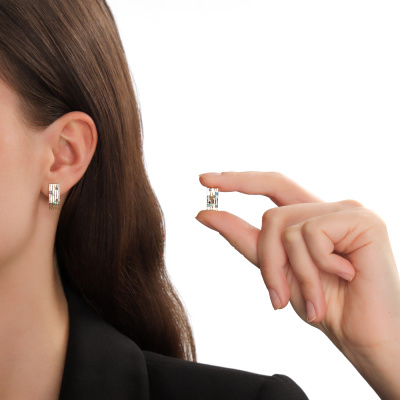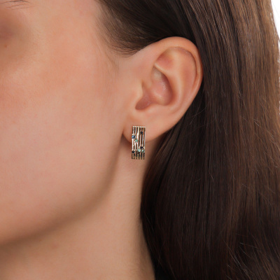 Серьги с 2 сапфирами природными, 0.07 карат, цвет 2, чистота 2, тип огранки В; 6 сапфирами природными, 0.07 карат, цвет 2, чистота 2, тип огранки В; 4 изумрудами природными, 0.04 карат, цвет 3, чистота 3, тип огранки В; 2 изумрудами природными, 0.01 карат, цвет 3, чистота 3, тип огранки В; Желтое золото 585 пробы.