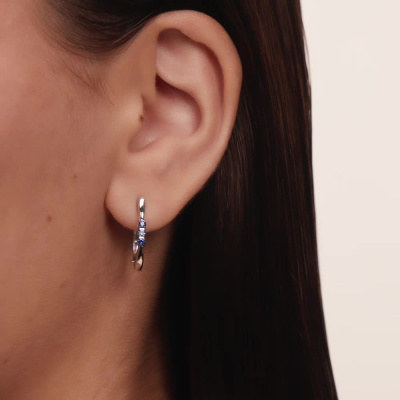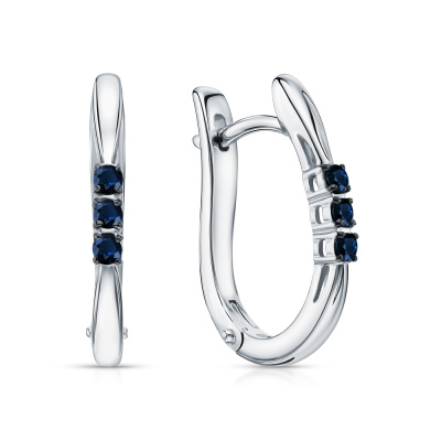 Серьги с 6 сапфирами природными, 0.23 карат, цвет 2, чистота 2, тип огранки В; Белое золото 585 пробы.