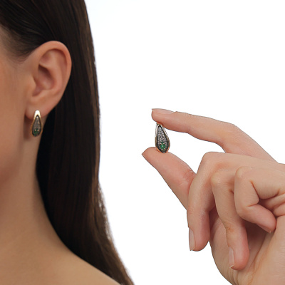 Золотые серьги с бриллиантами и бриллиантами чёрными природными и изумрудами природными
