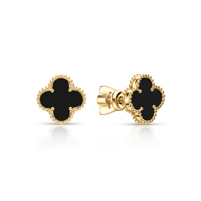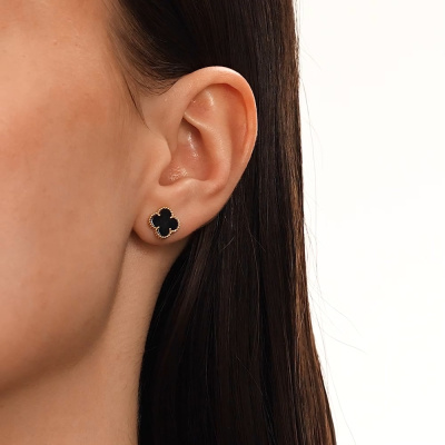 Золотые серьги с ониксом природным