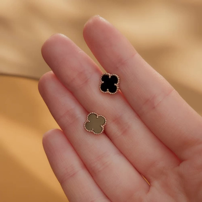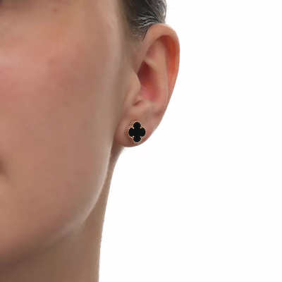 Золотые серьги с ониксом природным