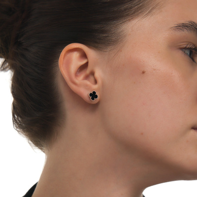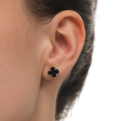 Серьги с 2 ониксами черными природными, 1.46 карат; Розовое золото 585 пробы.