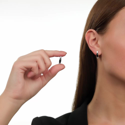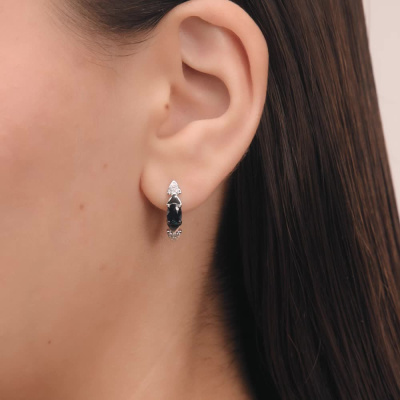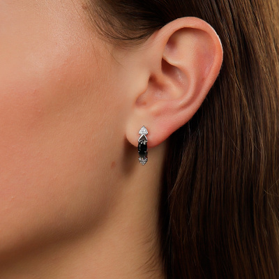 Серьги с 24 бриллиантами природными, 0.09 карат, огранка круг 17 граней, цвет 2, чистота 2, тип огранки А; 2 сапфирами природными, 1.1 карат, цвет 2, чистота 2, тип огранки Б; Белое золото 585 пробы.