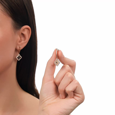 Серьги с 64 бриллиантами природными, 0.25 карат, огранка круг 17 граней, цвет 2, чистота 2, тип огранки А; 2 сапфирами природными, 0.15 карат, цвет 2, чистота 2, тип огранки В; Розовое золото 585 пробы.