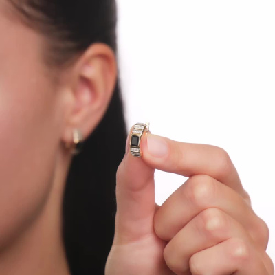 Серьги с 60 бриллиантами природными, 0.13 карат, огранка круг 17 граней, цвет 2, чистота 3; 2 агатами черными природными; Желтое золото 585 пробы.