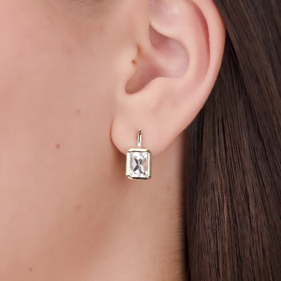 Золотые серьги с бриллиантами природными и хрусталем