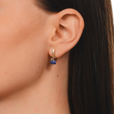 Серьги с 2 сапфирами выращенными, 2.07 карат; Розовое золото 585 пробы.