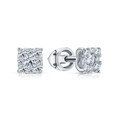 Серьги с 2 бриллиантами природными, 0.21 карат, огранка круг 57 граней, цвет 3, чистота 6, тип огранки А; 8 бриллиантами природными, 0.25 карат, огранка круг 57 граней, цвет 3, чистота 6, тип огранки А; 8 бриллиантами природными, 0.11 карат, огранка круг 57 граней, цвет 3, чистота 6, тип огранки А; Белое золото 585 пробы.