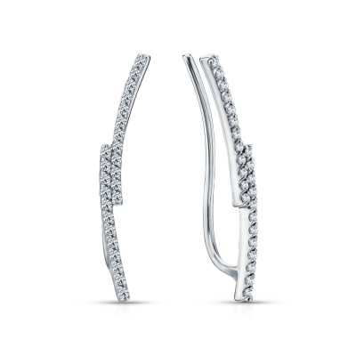 Серьги с 48 бриллиантами природными, 0.19 карат, огранка круг 17 граней, цвет 2, чистота 2, тип огранки А; Белое золото 585 пробы.