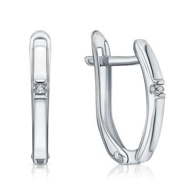 Серьги с 2 бриллиантами природными, 0.009 карат, огранка круг 17 граней, цвет 3, чистота 3, тип огранки Б; Серебро 925 пробы.