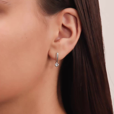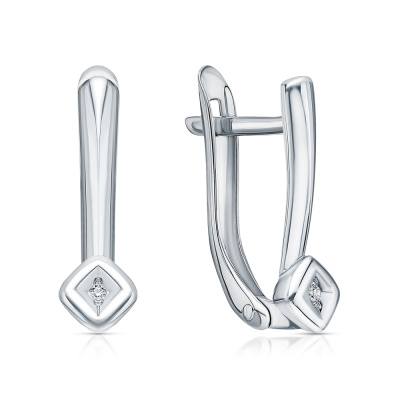 Серьги с 2 бриллиантами природными, 0.009 карат, огранка круг 17 граней, цвет 3, чистота 3, тип огранки Б; Серебро 925 пробы.