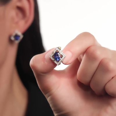 Золотые серьги с бриллиантами природными и сапфирами выращенными