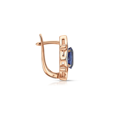 Серьги с 40 бриллиантами природными, 0.3 карат, огранка круг 17 граней, цвет 2, чистота 2, тип огранки А; 2 сапфирами выращенными, 3.5 карат; Розовое золото 585 пробы.