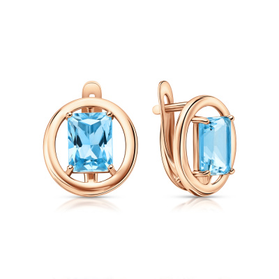 Серьги с 2 топазами скай природными, 3.62 карат; Розовое золото 585 пробы.