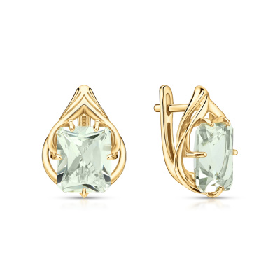 Серьги с 2 празиолитами природными, 5.63 карат; Желтое золото 585 пробы.
