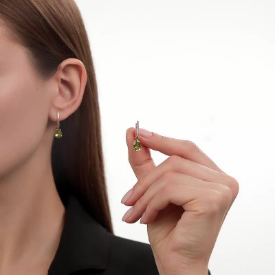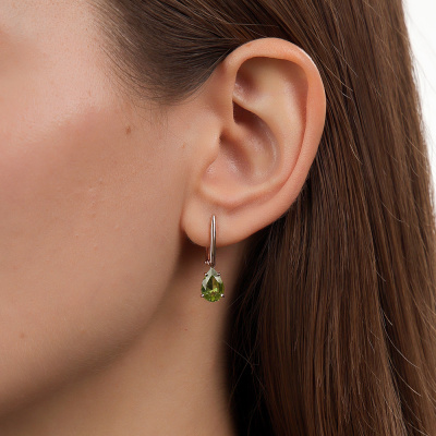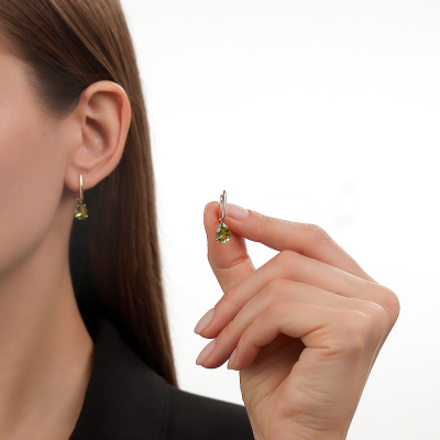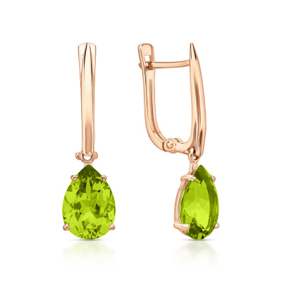 Серьги с 2 хризолитами природными, 3.77 карат; Розовое золото 585 пробы.