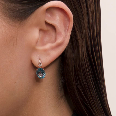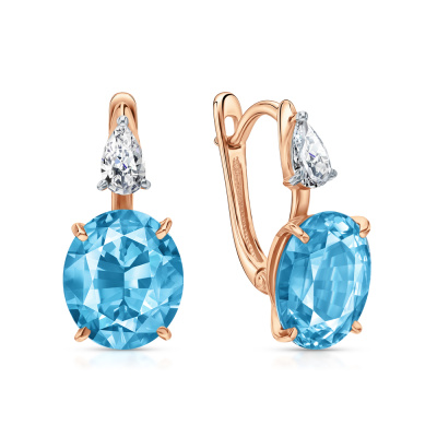 Серьги с 2 топазами свисс природными, 5.39 карат; 2 кварцами бесцветными природными, 0.31 карат; Розовое золото 585 пробы.