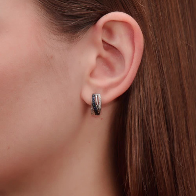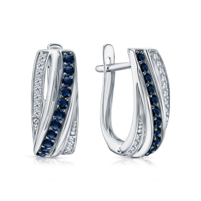 Серьги с 24 бриллиантами природными, 0.11 карат, огранка круг 17 граней, цвет 2, чистота 2, тип огранки А; 22 сапфирами природными, 0.42 карат, цвет 2, чистота 2, тип огранки В; Белое золото 585 пробы.