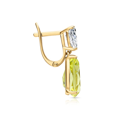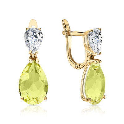 Серьги с 2 кварцами лимонными природными, 5.36 карат; 2 горными хрусталями природными, 1.22 карат; Желтое золото 585 пробы.