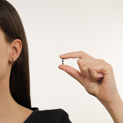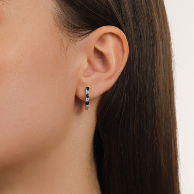 Серьги с 24 бриллиантами природными, 0.08 карат, огранка круг 17 граней, цвет 2, чистота 2, тип огранки А; 6 сапфирами природными, 0.48 карат, цвет 2, чистота 2; Розовое золото 585 пробы.