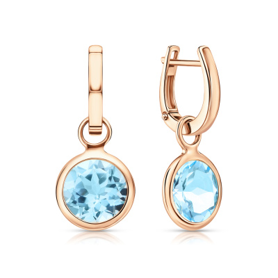 Серьги с 2 топазами скай природными, 8.27 карат; Розовое золото 585 пробы.