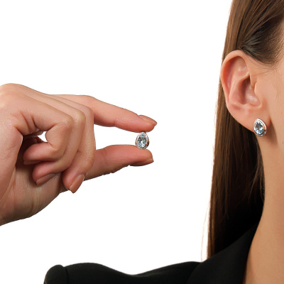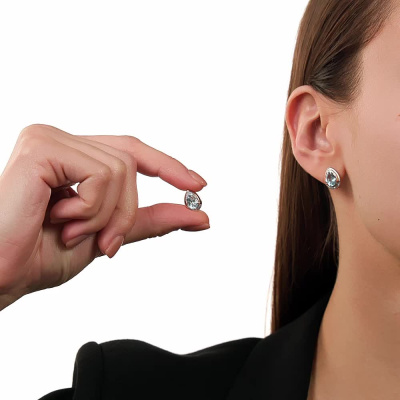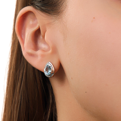 Серьги с 32 бриллиантами природными, 0.07 карат, огранка круг 17 граней, цвет 2, чистота 2, тип огранки А; 2 топазами скай природными, 2.51 карат; Розовое золото 585 пробы.
