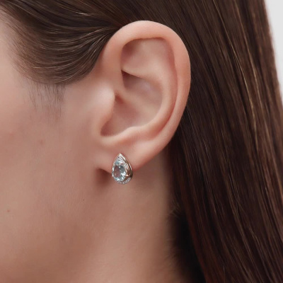Серьги с 32 бриллиантами природными, 0.07 карат, огранка круг 17 граней, цвет 2, чистота 2, тип огранки А; 2 топазами скай природными, 2.56 карат; Розовое золото 585 пробы.