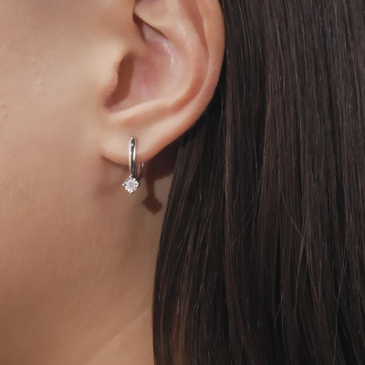 Серьги с 2 бриллиантами природными, 0.06 карат, огранка круг 57 граней, цвет 3, чистота 6, тип огранки А; Белое золото 585 пробы.