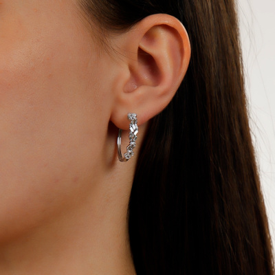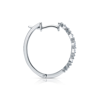 Серьги с 40 бриллиантами выращенными, 0.65 карат, огранка багет 25 граней, цвет 3, чистота 5, тип огранки А; Белое золото 585 пробы.