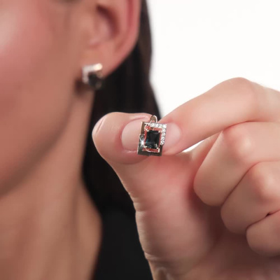 Серьги с 16 бриллиантами природными, 0.13 карат, огранка круг 57 граней, цвет 3, чистота 6; 2 топазами лондон природными, 2.26 карат; Розовое золото 585 пробы.