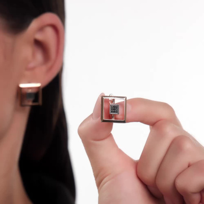 Серьги с 18 сапфирами черными природными, 0.17 карат; Розовое золото 585 пробы.