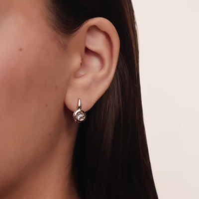 Серьги с 2 бриллиантами природными, 0.01 карат, огранка круг 57 граней, цвет 4, чистота 5, тип огранки А; Розовое и белое золото 585 пробы.