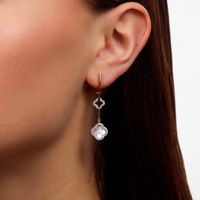 Золотые серьги с бриллиантами природными и перламутром природным