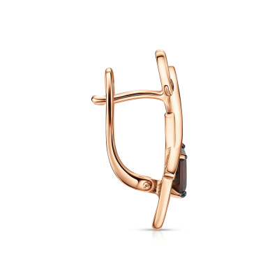 Серьги с 2 гранатами природными, 1.4 карат; 20 бриллиантами черными природными облагороженными, 0.17 карат, огранка круг 57 граней, цвет 7, чистота 6, тип огранки А; Розовое золото 585 пробы.