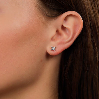 Серьги с 2 бриллиантами природными, 0.01 карат, огранка круг 57 граней, цвет 3, чистота 6, тип огранки А; Белое золото 585 пробы.