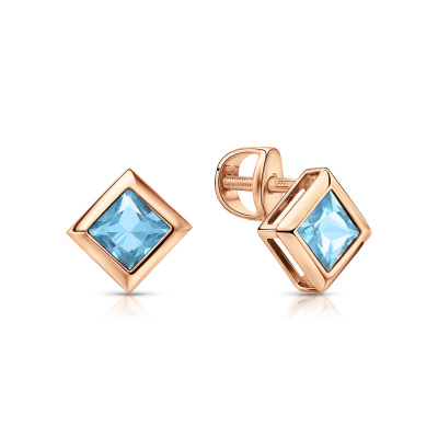 Серьги с 2 топазами свисс природными, 0.69 карат; Розовое золото 585 пробы.