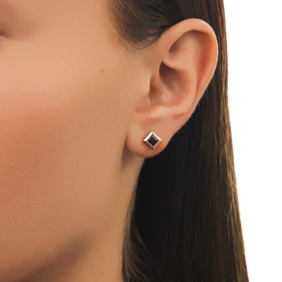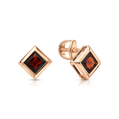 Серьги с 2 гранатами природными, 0.84 карат; Розовое золото 585 пробы.