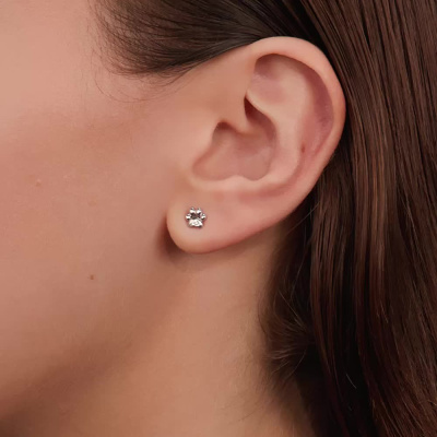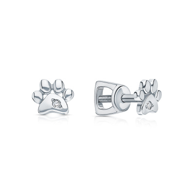 Серьги с 2 бриллиантами природными, 0.01 карат, огранка круг 17 граней, цвет 3, чистота 3, тип огранки Б; Серебро 925 пробы.