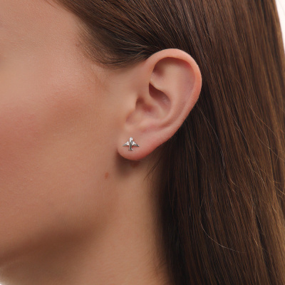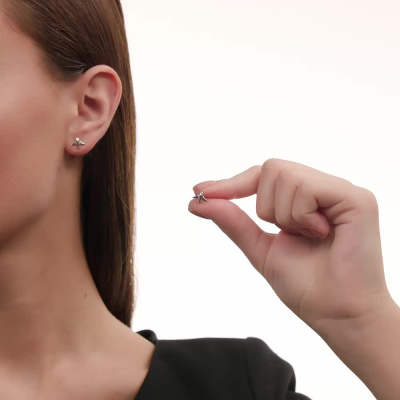 Серьги с 2 бриллиантами природными, 0.008 карат, огранка круг 17 граней, цвет 3, чистота 3, тип огранки Б; Серебро 925 пробы.