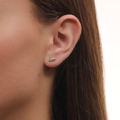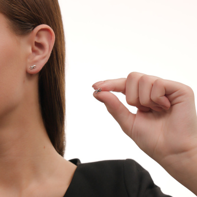 Серьги с 2 бриллиантами природными, 0.01 карат, огранка круг 17 граней, цвет 3, чистота 3, тип огранки Б; Серебро 925 пробы.